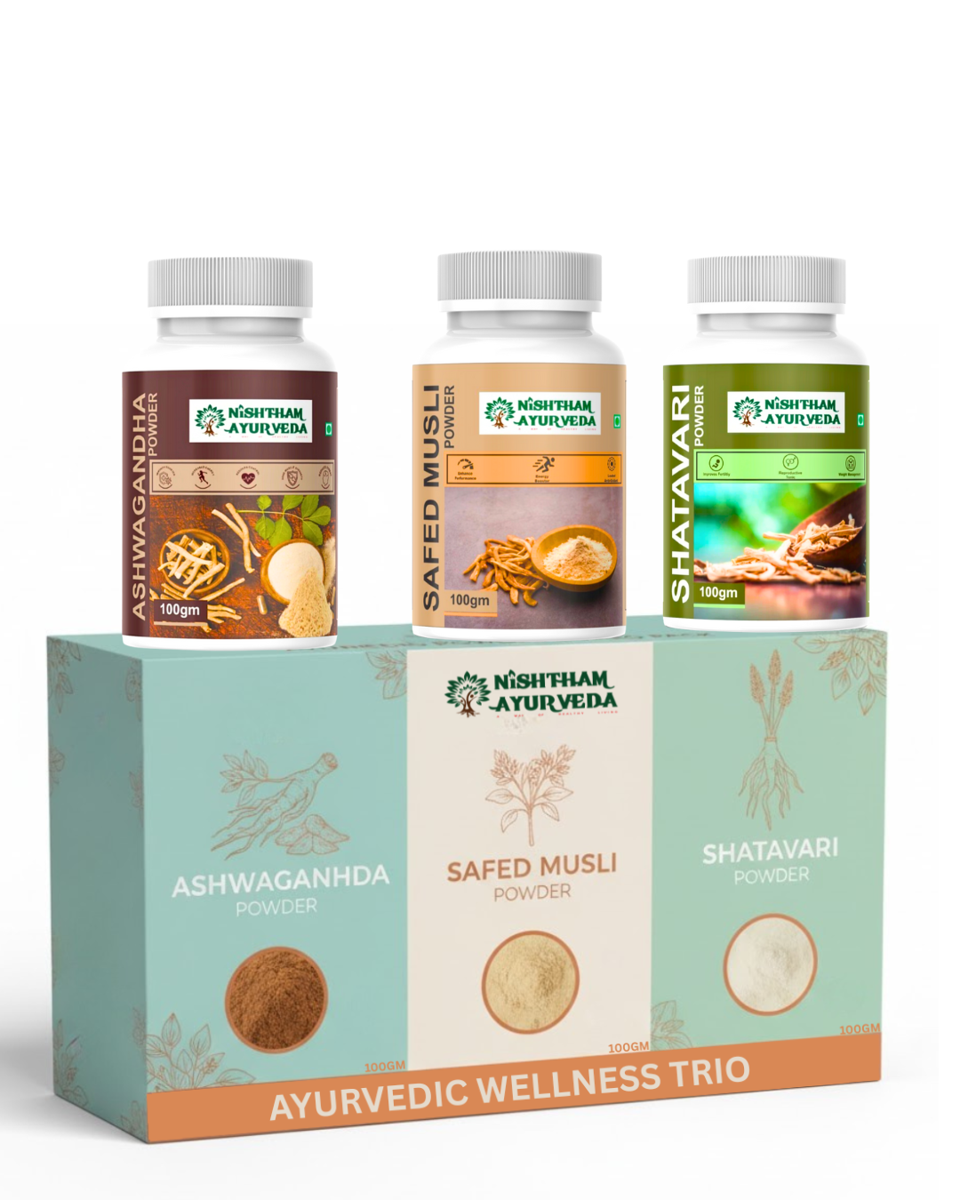 Ashwagandha + Safed Musli + Shatavari Powder combo- Natural performance Enhancer pack 300gm