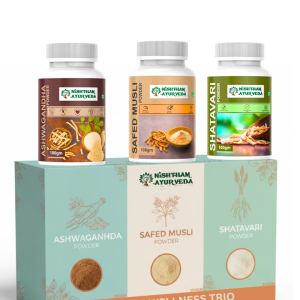 Nishtham Ayurveda’s Triphala Powder is a traditional blend of Amla, Haritaki, and Bibhitaki, renowned for its detoxifying, digestive, and antioxidant properties.